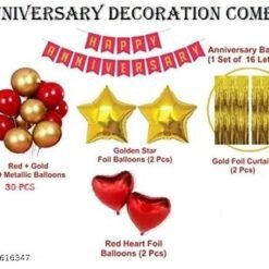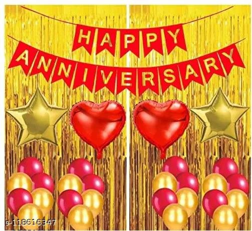 (37 Pcs) Anniversary Decoration For Home Kit with Happy Anniversary Banner, Curtains & Heart Foil with HD Metallic Balloons Decoration Kit Set Decorations Items Combo (Red-Gold)