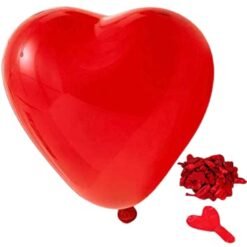 20 pcs Red Heart shape Balloon, 20 pcs Red Balloon, 20 pcs White Balloon, 2 pcs White Net,2 pcs led fairy light, 1 pc Cursive bday banner, 1 roll glue dot, 1 roll arc,4 pcs small golden curling ribbon.