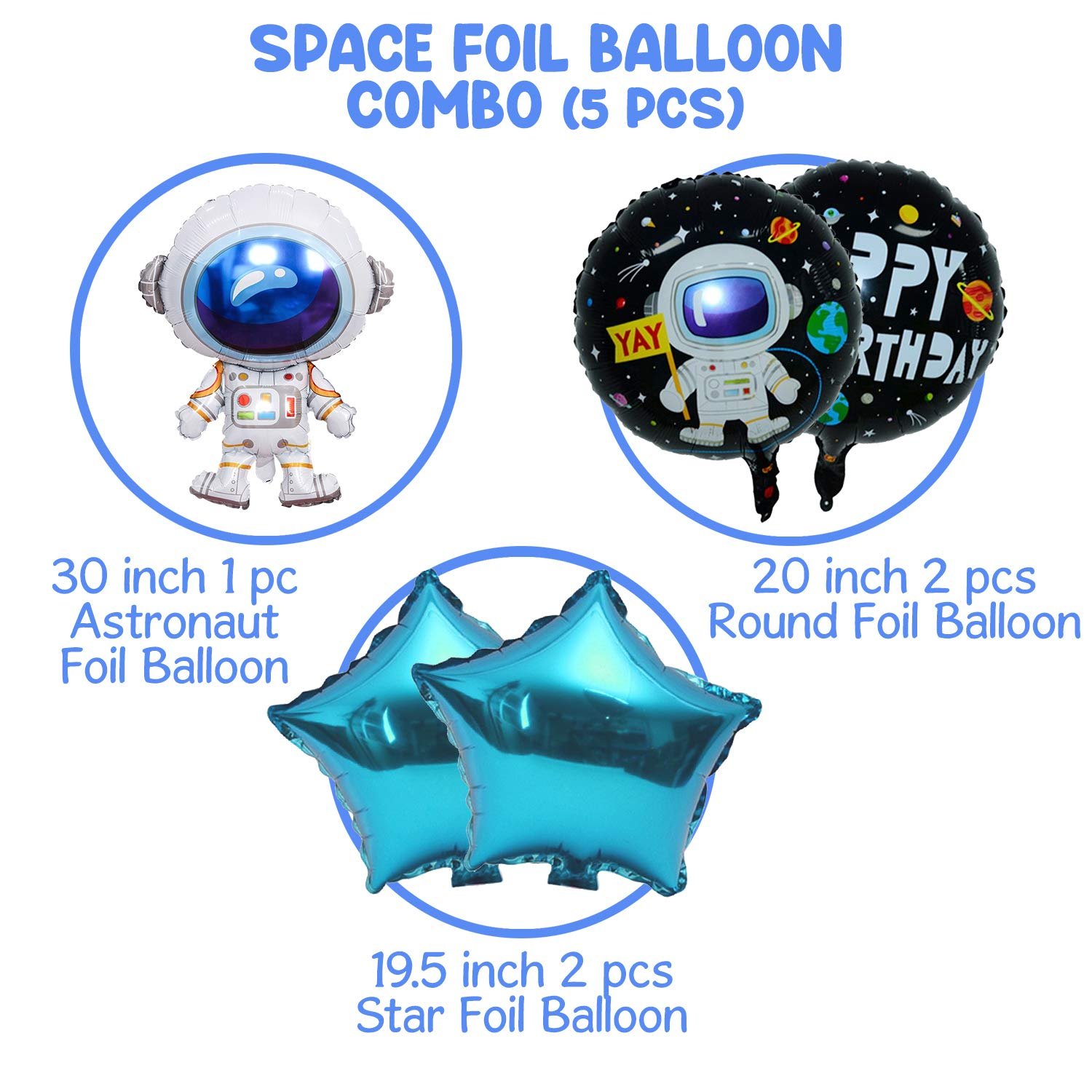 Astronaut Space Theme Foil Mylar Balloon Set For Birthday Decoration - 5 Pcs(Multi)