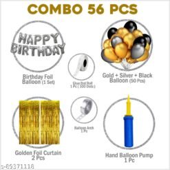 Balloon & You Happy Birthday Decorations , Birthday Ka Saman, Happy Birthday Letters Foil with Metallic Balloons Foil Curtain Hand Balloon Pump Decoration Kit ? 56Pcs Set for Adult, Kids, Boy, Girl, 25th, 30th, 40th, 50th Party Supplies / Kids Birthday Party Decoration Items