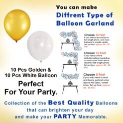 1pc golden happy birthday foil banner, 10pcs white balloons, 10pcs golden balloons, 1pc led fairy lights with 1pc glue dot & 1pc baloons arch for 1st birthday decoration for girls, 6 months birthday decorations for girl, party backdrop decoration,