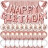 13 Pcs of Rose gold Happy Birthday Foil Balloon, 2 Pcs Rosegold Star Shape Foil Balloons, 2 Pcs Silver Star Shape Foili Balloons, 10 Pcs Rosegold Metallic balloons, 10 Pcs Silver Metallic Balloons, 1 Pc Silver Ribbon.
