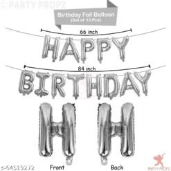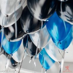 Birthday Decoration Set Including Silver Foil Happy Birthday Foil (13Letters), 2Pcs. 16″ Foil Stars(Black,Silver) 30 Metallic (Black, Blue & Silver) Balloons