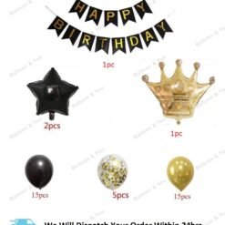 Birthday Decorations, Birthday Ka Saman, Happy Birthday Decoration, Happy Birthday Decorations Combo, Birthday Party Decorations KIT – Happy Birthday Banner, Gold Crown Balloon Gold and Black Latex Balloons, Perfect Party Supplies