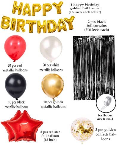 black golden white Red Happy Birthday Decoration Combo Kit with Banner, Balloons, Foil Curtain, 81pcs for Birthday Decoration Boys, Kids, Girl, Husband, Wife, Girl Friend, Adult.