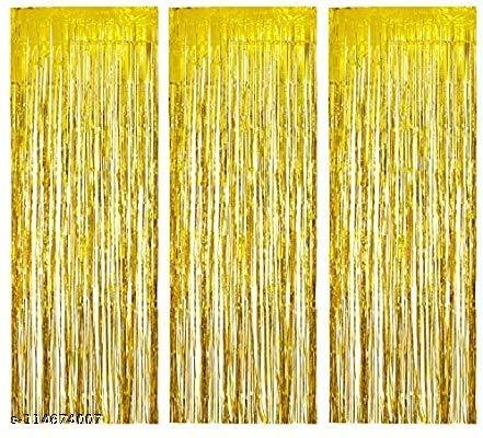 Creations 3 Pcs Golden Colour 3ft x 6ft Tinsel Metallic Foil Fringe Curtains Party Stage Backdrop Simmer Curtain for Valentines Day Wedding,Anniversary, Birthday