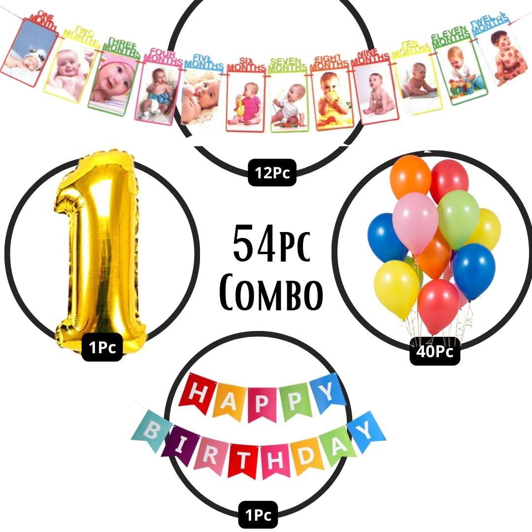 First Birthday Decorations for Boys, Girls, Kids - 1st Birthday Decorations for Girls, Boys - 1st Birthday Theme Decoration Combo - 1st Birthday Party Supplies for Boys, Girls