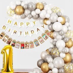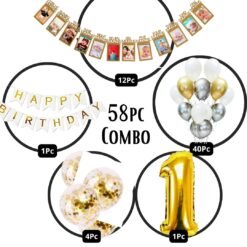 40 Balloons, 4 Confetti Balloons, 1 Happy Birthday Banner, 1 photo banner