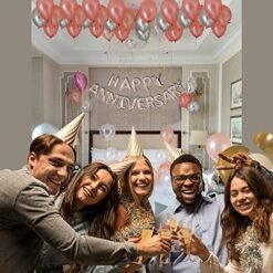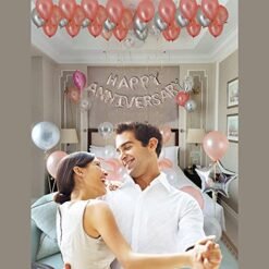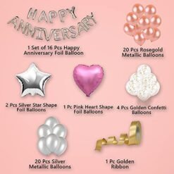Golden Happy Wedding Anniversary Decoration Kit – 64 Pcs Combo -Happy Anniversary Foil Balloon, Star & Heart Shape Foil, Confetti & Metallic Balloons Bedroom Decoration Items