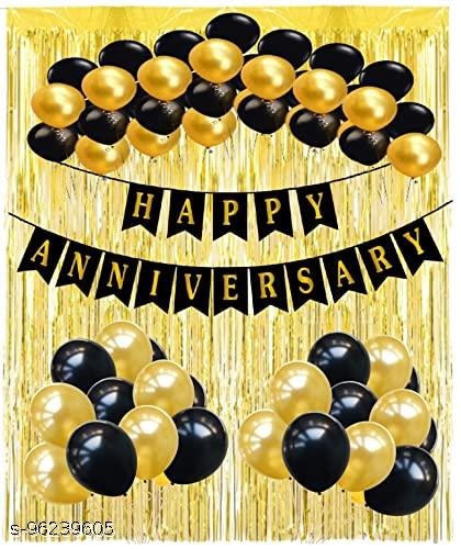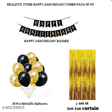 Happy Anniversary Decoration Kit For Home -33 Items Gold Combo Set, Curtains, Balloons, Foil Balloons anniversary decoration items For Bedroom