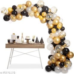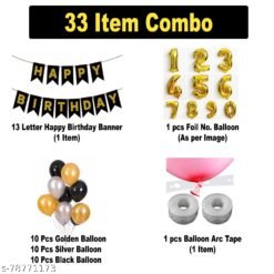 Happy Birthday 1 Year Decoration kit For Boy and Girl Birthday Party Decoration 33 Pcs Golden Combo Items 10 Golden 10 Silver 10 Black Latex Balloons 1 Birthday Banner 1 Arc Tape