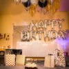 Happy Birthday Banner- Black + 2pcs Black Star(10inch) + 30pcs Gold, Black Metallic Balloons Combo