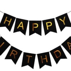 Happy Birthday Banner For Decoration Kit – 35 Pcs Combo Set – Black Happy Birthday Banner, Golden Curtain and Red Star Foil with HD Metallic Red and Black Latex Balloons