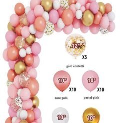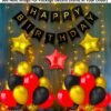 Happy Birthday Black Banner + 2pcs Fringe Foil Curtain (Big Size) + 5pcs Confetti with 40pcs HD Metallic Balloons (Pack of 48) (Rose Gold)