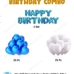 Happy Birthday Decoration, Birthday Decorations, Birthday Ka Saman, 63PCS Blue Happy Birthday Letters Foil Balloon Set Decoration Combo with 50 Metallic Balloon, Boys Birthday Decoration for Birthday Celebration