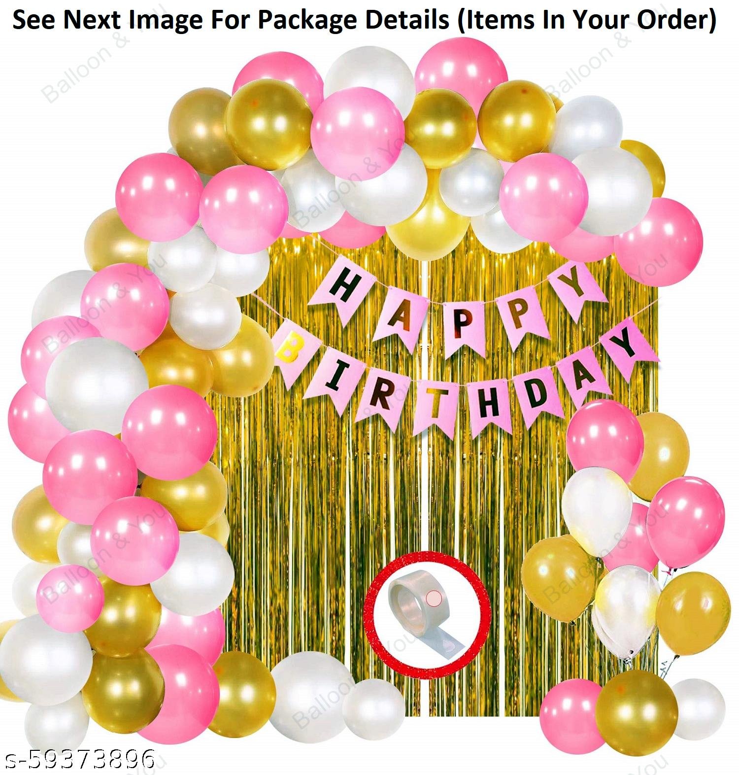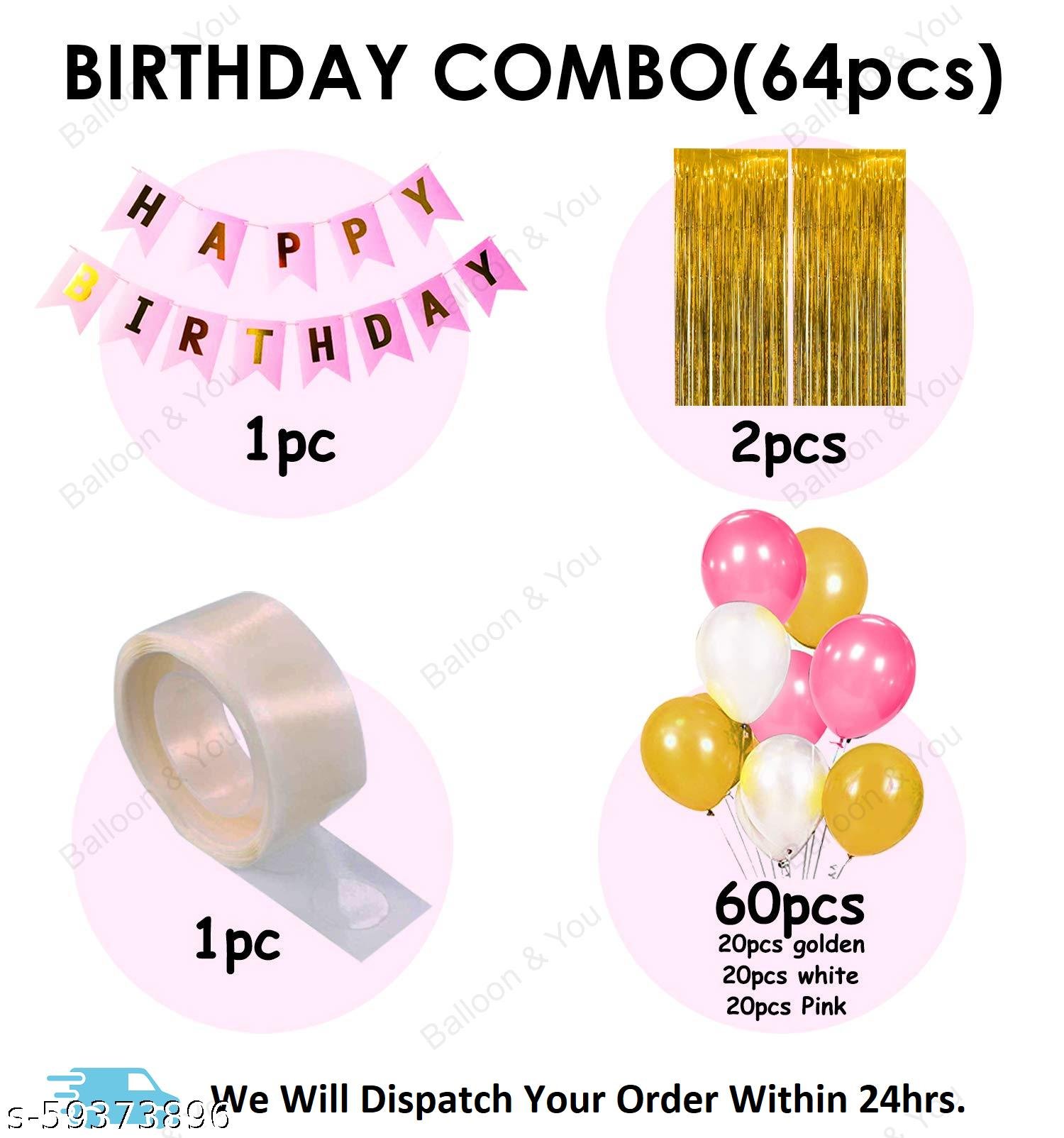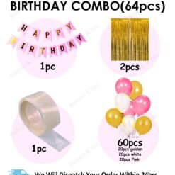 Happy Birthday Decoration, Birthday Decorations, Birthday Ka Saman, Birthday Decoration Kit for Girls ? 64Pcs Pink, Glden White Metallic Birthday Balloons for Girls Decoration, Golden Foil Curtain, Pink Happy Birthday Banner/Birthday Decoration Combo Set