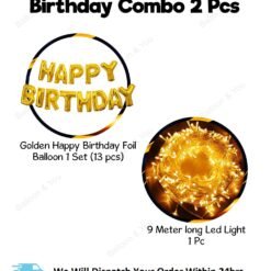 Happy Birthday Decoration, Birthday Decorations, Birthday Ka Saman, Golden Happy Birthday Decoration Kit -2Pcs HBD Foil Balloon With Led Light Birthday Decorations Items For Bday Lights Combo Pack Set, Husband,Wife, First, 2nd,30th,40th,50th Theme