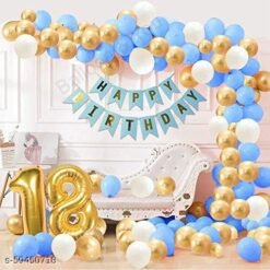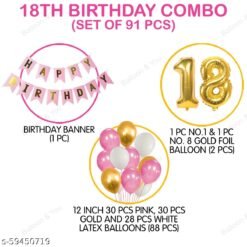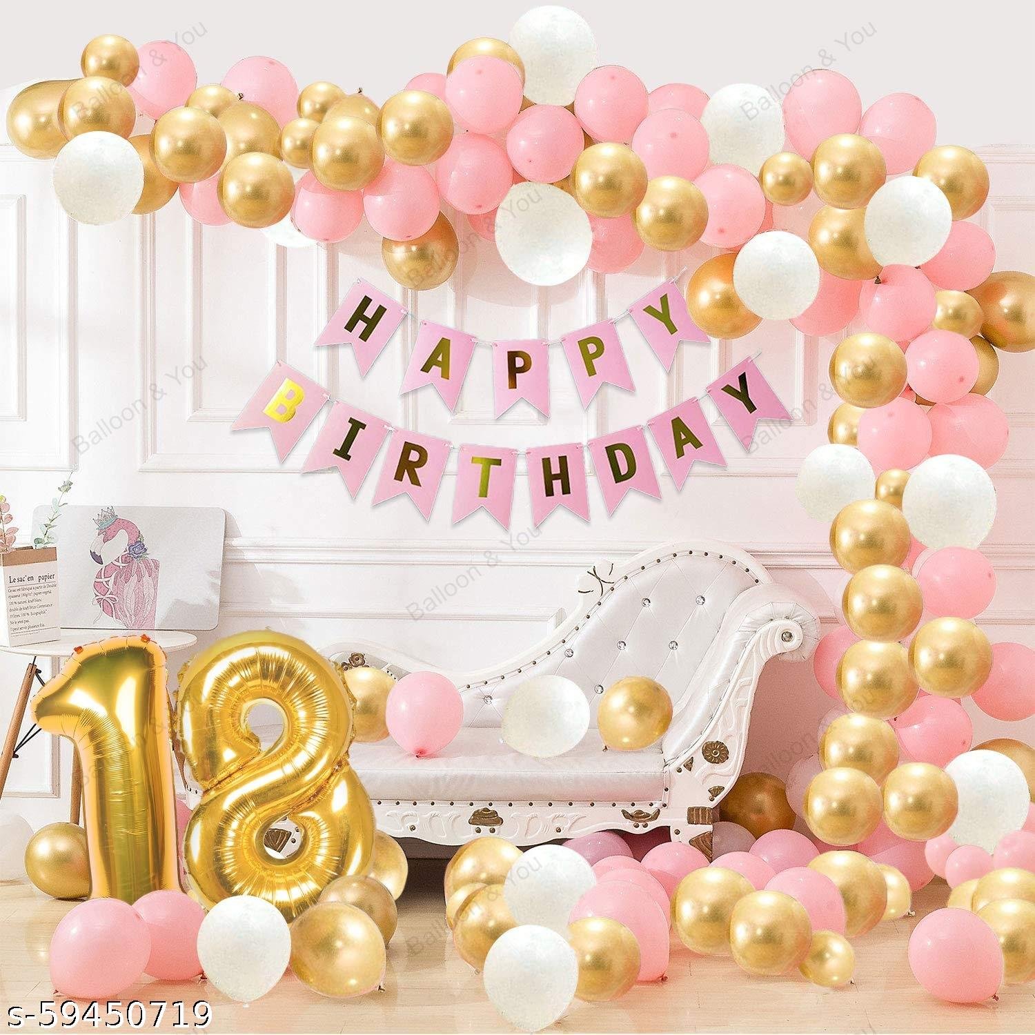 Happy Birthday Decoration, Birthday Decorations, Birthday Ka Saman,18th Happy Birthday Balloons Decoration Kit Items Combo Pink Gold White-90Pcs for Kids Girls Adult Women Wife Second Theme Decorations/Foil Balloon,Metallic Latex Balloon,Curtain,Banner