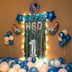 Kids Frozen Theme 2nd Birthday Balloon Decoration Item – Combo 27 Pcs – Silver Digit Foil Balloon, Frozen Theme Foil Balloon, Blue Curtain