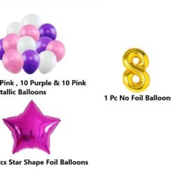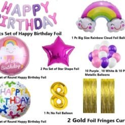 No 8 Gold Balloons with Rainbow Theme Birthday Decoration Items or Kit Multicolor Foil of 13 Letters with 30 HD Metallic Purple , Pink & White Balloons birthday celebration Theme Party Decoration Baby Shower + 1 Pc Big Rainbow Cloud Foil + 18 ” inch 4 Pcs Rainbow Round Shape Foil Balloons for Party Supplies Boys ,Girls & Kids + 18 ” inch 2 Pcs Dark Pink Star Shape Foil Balloons + 2 Gold Foil Fringes Curtains + 8th Birthday or 8th Year Birthday Gold Foil Balloon (Pack of 53)