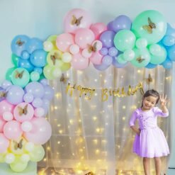 pastel rainbow butterfly theme birthday party decorations Combo Kit includes 81 pcs- white net Curtain cloth with Fairy Lights