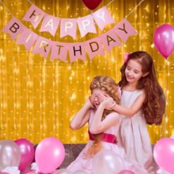 1pc pink happy birthday banner with 1set warm white led string light