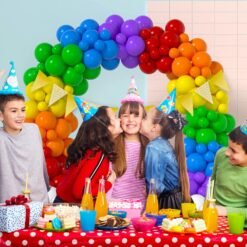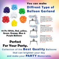 10pcs purple/10pcs blue/10pcs green/10pcs white/10pcs red/10pcs yellow/10pcs orange metallic balloons, 1pc golden pennant banner (cardstock), 1pc balloon arch, 1p… See more