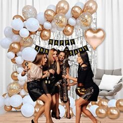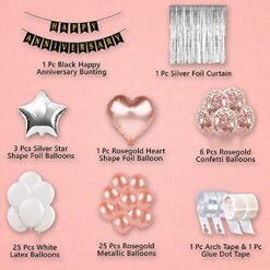 Rosegold & White Anniversary Decoration Items For Bedroom – Pack of 64 Pcs – Anniversary Banner, Foil Curtain, Star and Heart Shape Foil Ballloons, Metallic Balloon