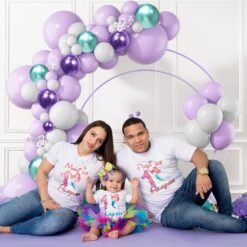 5pcs purple chrome balloons, 5pcs tiffany blue balloons, 20pcs light purple balloons, 30pcs white balloons for decoration, 1pc glue dot roll