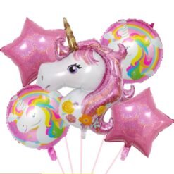 Unicorn Theme Birthday Decoration Combo of 68pc for Girls / 1st Birthday – 60 Balloons, 5pc Unicorn Balloon Set , 1 Banner , 2 Rose Gold Curtains ( Unicorn Birthday Decorations for Girls / First Birthday )