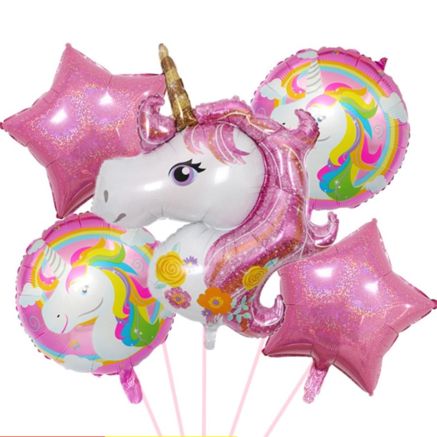 Unicorn Theme Birthday Decoration Combo of 68pc for Girls / 1st Birthday - 60 Balloons, 5pc Unicorn Balloon Set , 1 Banner , 2 Rose Gold Curtains ( Unicorn Birthday Decorations for Girls / First Birthday )