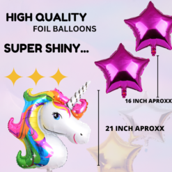 unicorn theme Birthday Decoration kit – 57Pcs Combo with Rainbow happy Birthday foil, Unicorn foil, Star foil pink foil, Crown foil Golden, Crown foil pink, Mix Metalic balloons Purple white pink Decoration for Boy or Girls