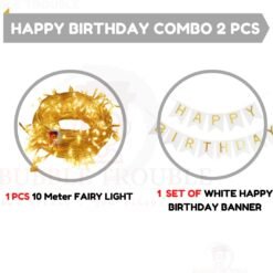 White Happy Birthday Banner With Fairy Light Combo (Set of 2) For Birthday Decoration for Boys, Girls, Boyfriend, Girlfriend, Husband,Kids Bday Celebrations,Bunting Tags,Flag Decorative Items Banner